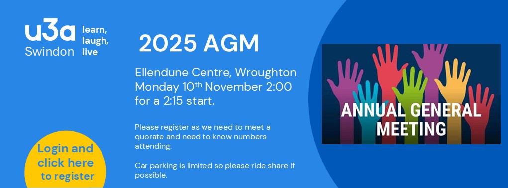 As a member of Swindon u3a you also have access to a fascinating range of Free Online Talks from experts in the wider Third Age Trust u3a family. Click here to take a look and book.